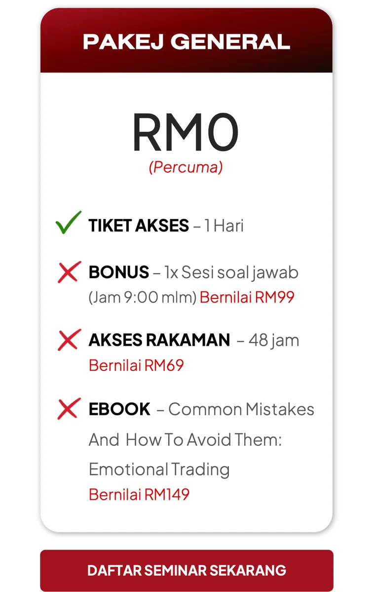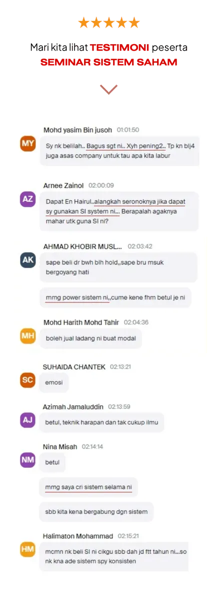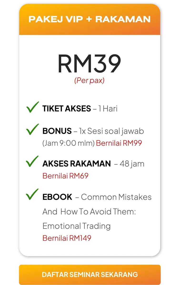 Seminar ini sesuai untuk mereka yang dah lama berdagang tapi masih belum konsisten dan pada yang baru nak mula berdagang Saham di Bursa Malaysia.